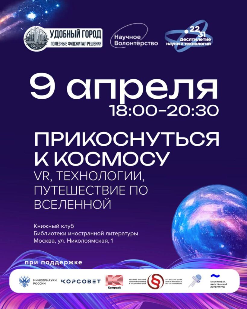 9 апреля команда «Удобного города» проведёт открытое мероприятие для всех, кого вдохновляют космос, наука и технологии.