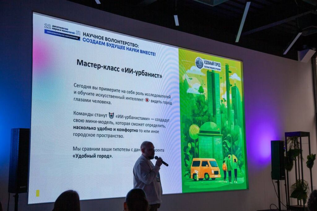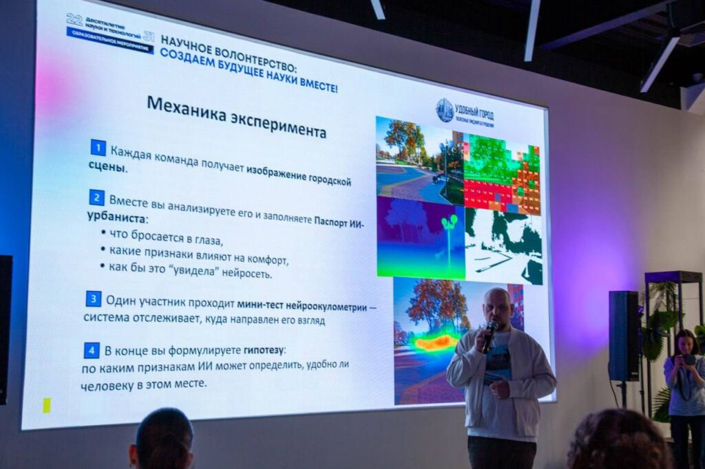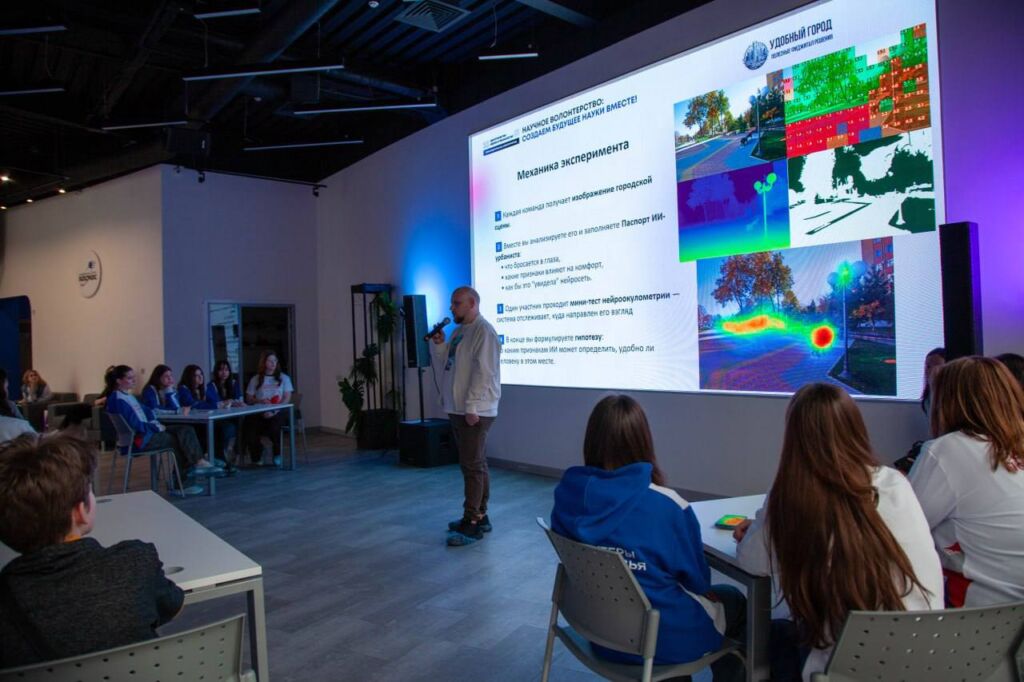 В рамках Космической недели «Удобного города» в Молодёжном центре «Космос» в Королёве команда фиджитал-проекта научного волонтёрства «Удобный город» провела авторский мастер-класс «ИИ-урбанист» для волонтёров Подмосковья и школьников города. Участники познакомились с возможностями научного волонтёрства, современными форматами помощи исследователям и практическими подходами к изучению городской среды с использованием нейросетей и нейрокогнитивных методов.