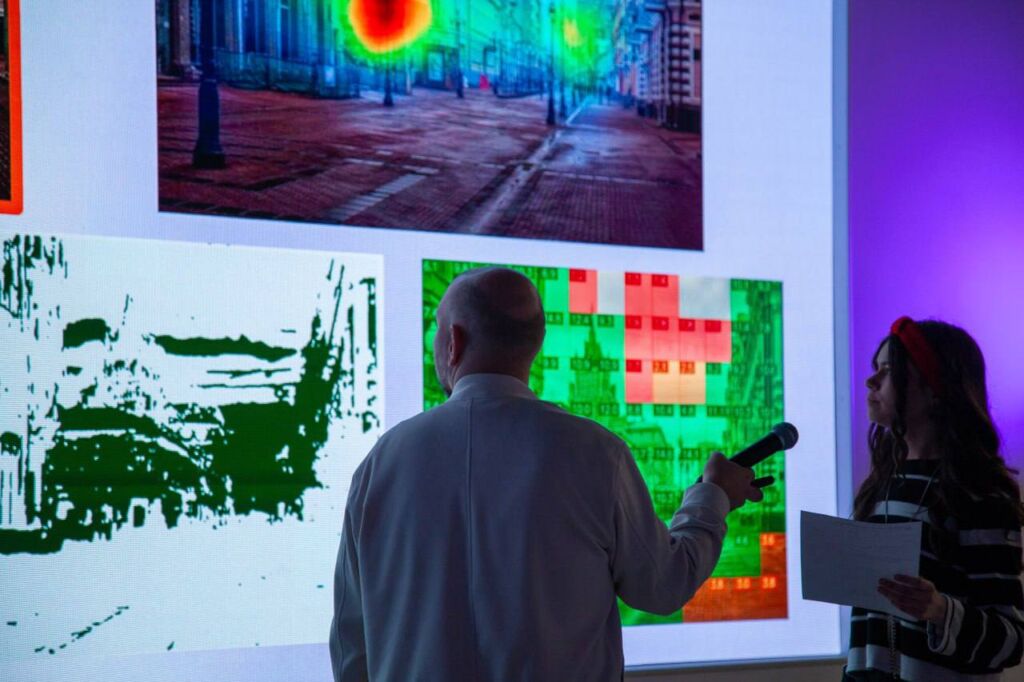 Ключевым событием программы стал мастер-класс «ИИ-урбанист», посвящённый тому, как нейросети, аналитика и нейрокогнитивные исследования помогают изучать восприятие современных городских пространств. В рамках практической части участники сначала самостоятельно анализировали визуальные характеристики различных городских сред, затем сопоставляли свои наблюдения с результатами нейросетевого анализа, а также знакомились с данными нейротрекинга. Такой формат позволил наглядно показать, как соединяются человеческое восприятие, цифровая обработка информации и исследовательская интерпретация данных.