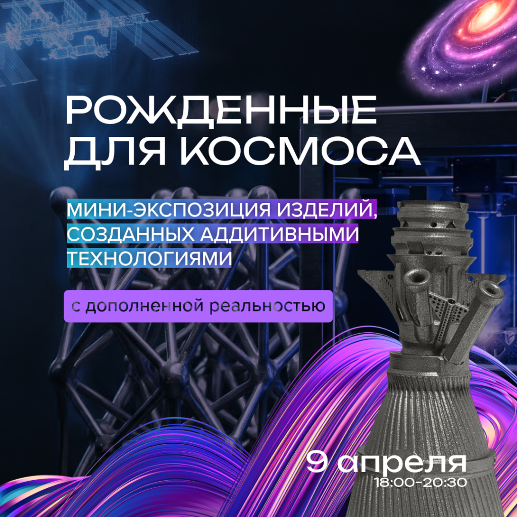 9 апреля 18.00-20.30 «Прикоснуться к Космосу»: виртуальное путешествие по Солнечной системе и космической станции, научный лекторий об аддитивных технологиях, мини-экспозиция изделий, Москва